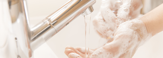 その際、石けんと流水で行うほか、アルコールも併用しています。