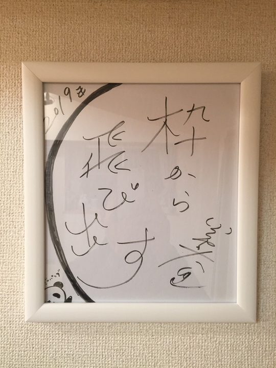 今日は大変嬉しいことがありました。女優の田中美里さんの自筆の色紙をいただいたのです。色紙に書かれている文字は「2019 枠から飛び出す 田中美里」。