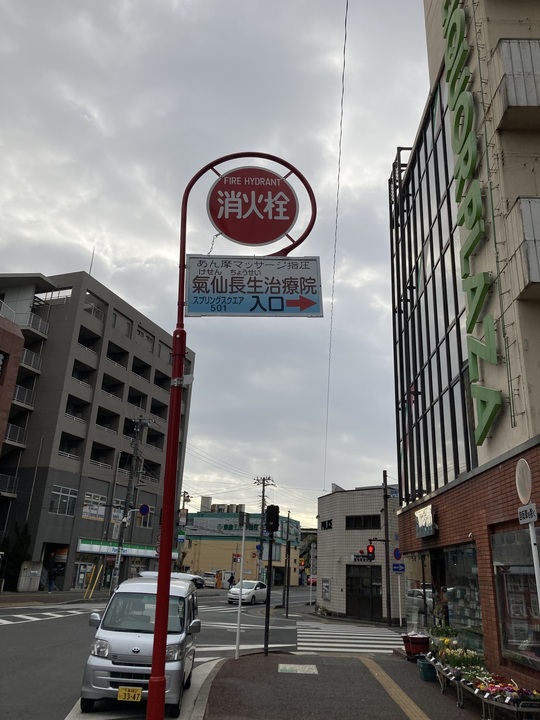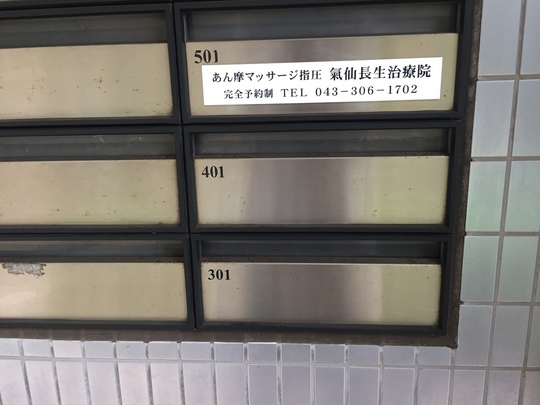 ③ この氣仙長生治療院の看板が目印。千葉銀行とリカープラザ大越酒店の間の道を右折。